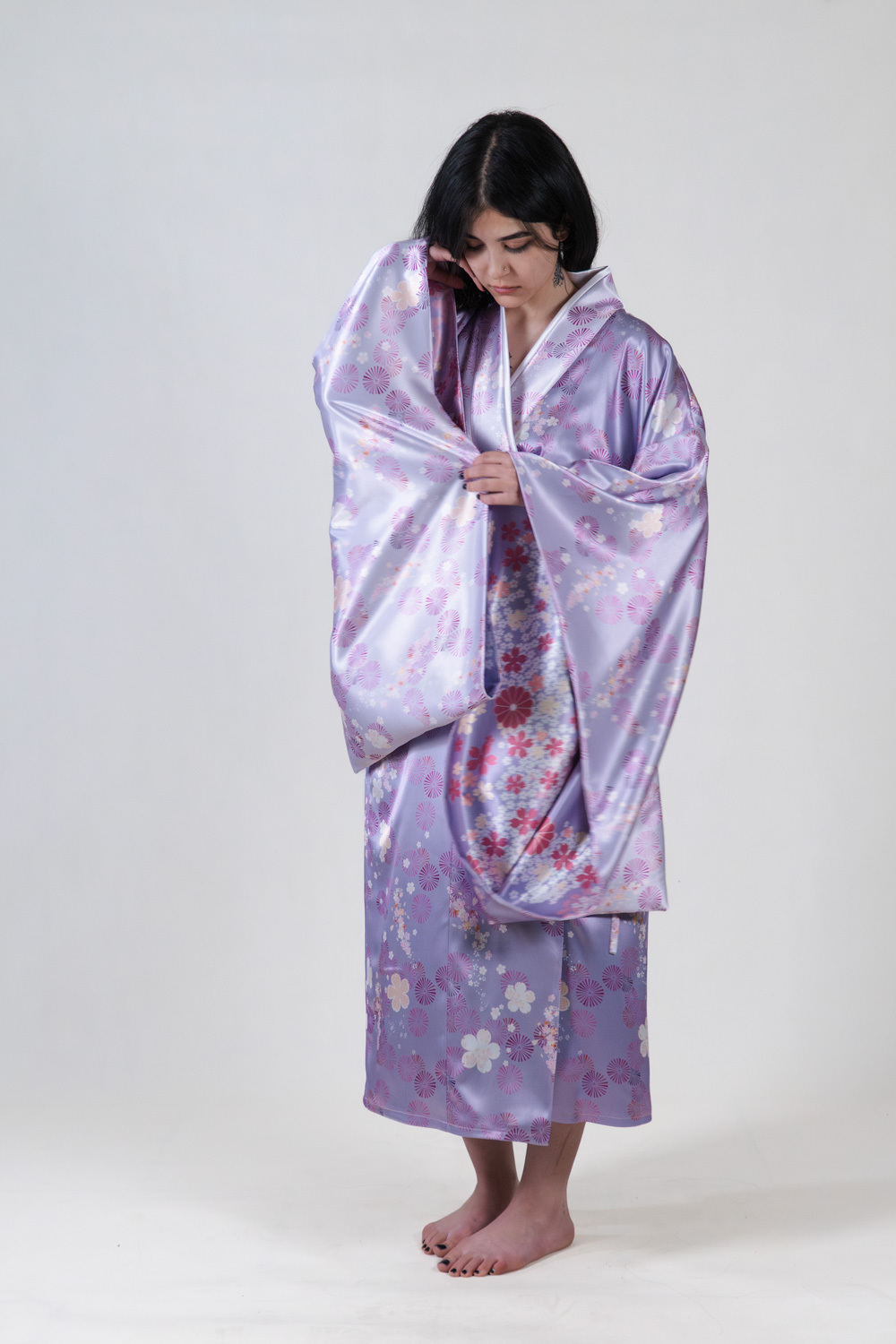 Sumire تجسم لطافت بنفشه در سکوتی باوقار است؛ کیمونویی که با حضورش فضا را آرامتر میکند و بدون اغراق، لوکس بودن را تعریف میکند. طیف یاسیِ درخشان این مدل، با نقشمایههای شکوفه و الگوهای الهامگرفته از هنر ژاپنی ترکیب شده تا تصویری متعادل از ظرافت و اصالت بسازد؛ نه شلوغ، نه نمایشی